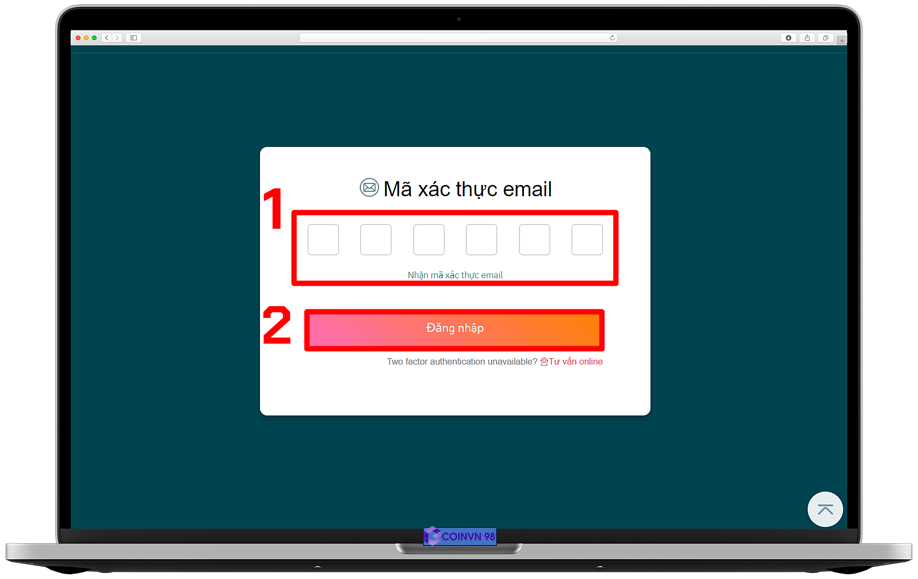 Then you just need to enter your email and account password => Click log in => Confirm again => Enter the code sent to the email => Log in.
