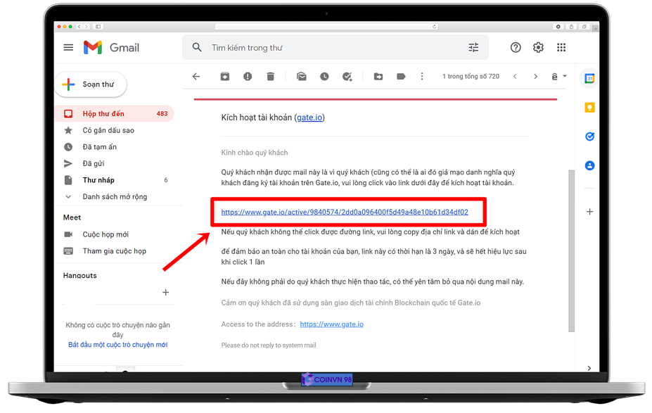 Step 4: Check the email received from Gate => Click on the link to activate your account.