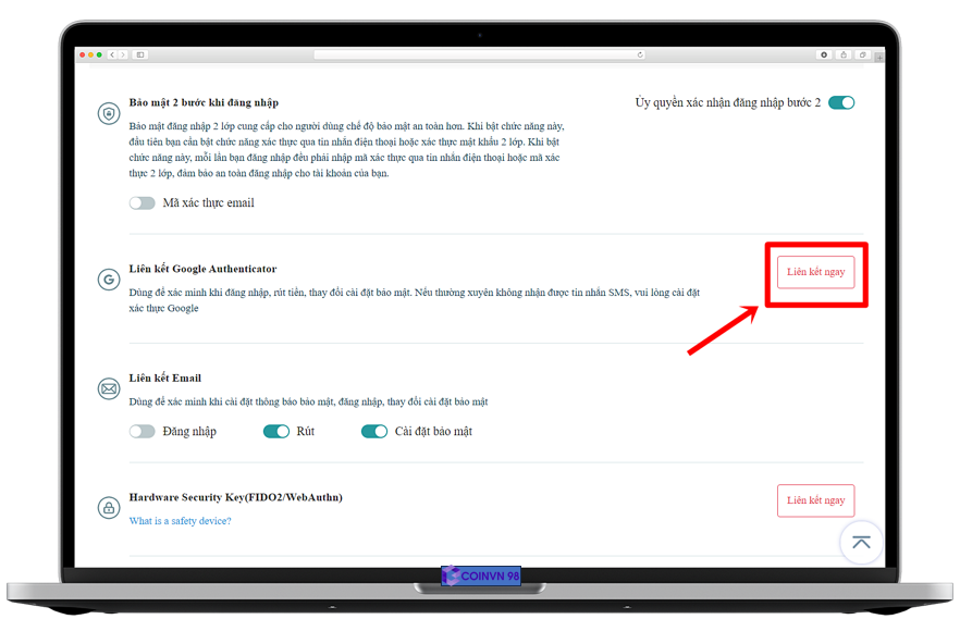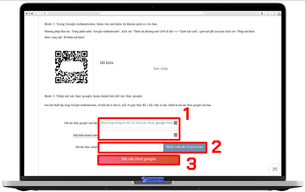 Step 6: Click the email verification code => Check your email and enter the code into the box => Click turn on google authentication and you’re done.