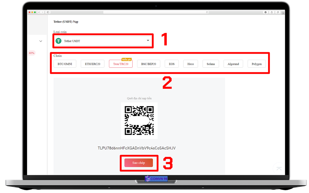 Step 2: Search for the coin you want to deposit => Select the coin’s criteria => Copy the wallet address => Send your child to the Gate wallet.